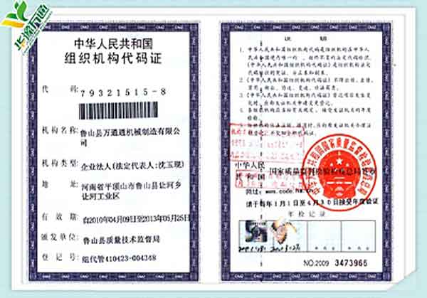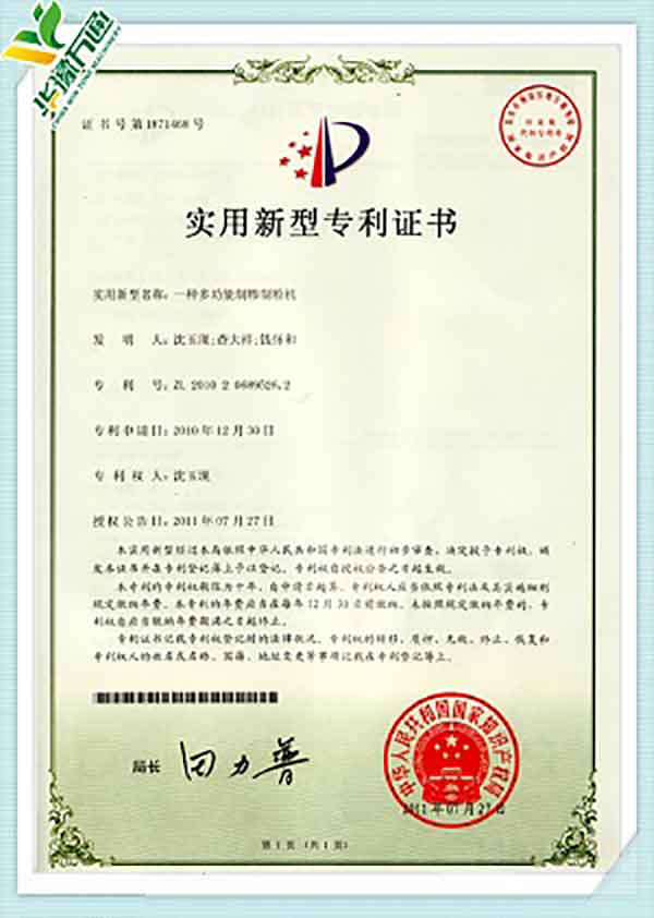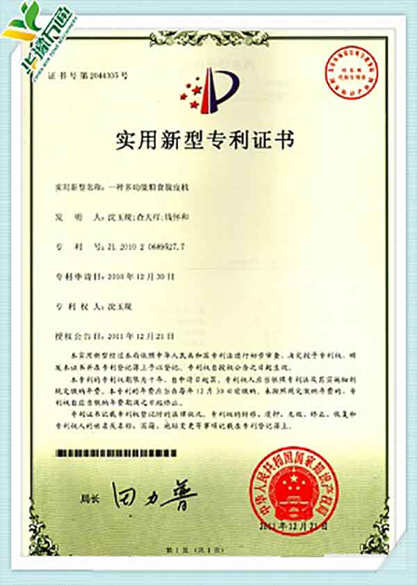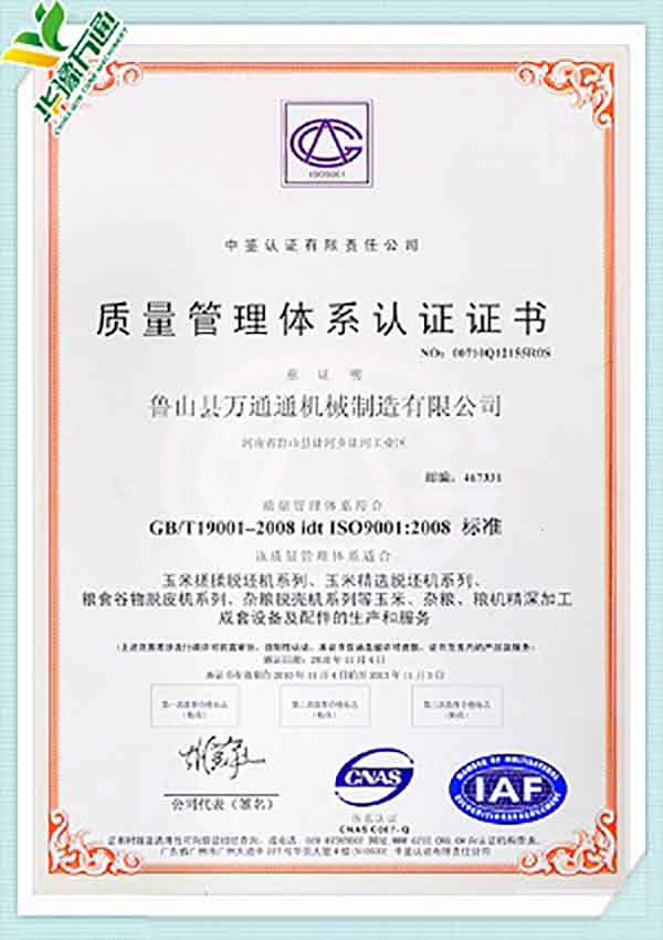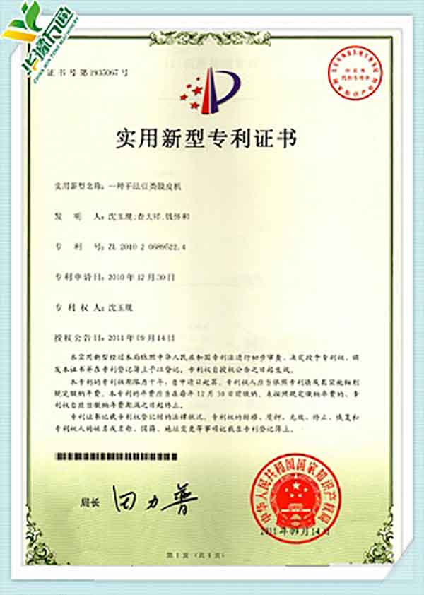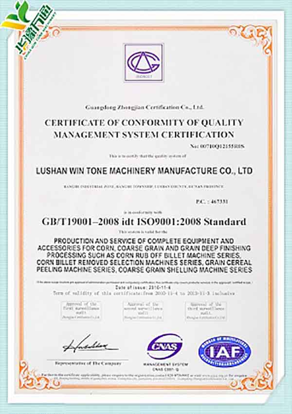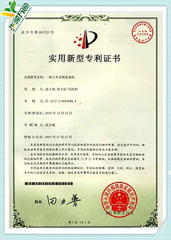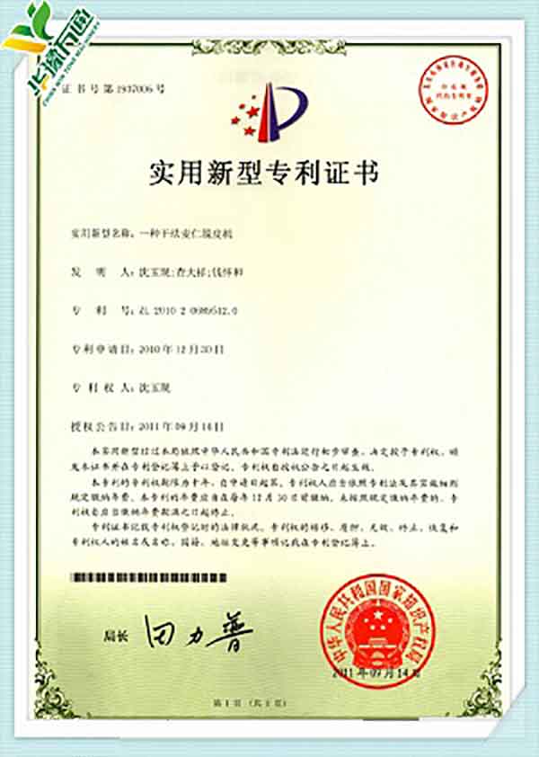 New Type Corn Huller Patent Quality Management System Certificate(English Version)