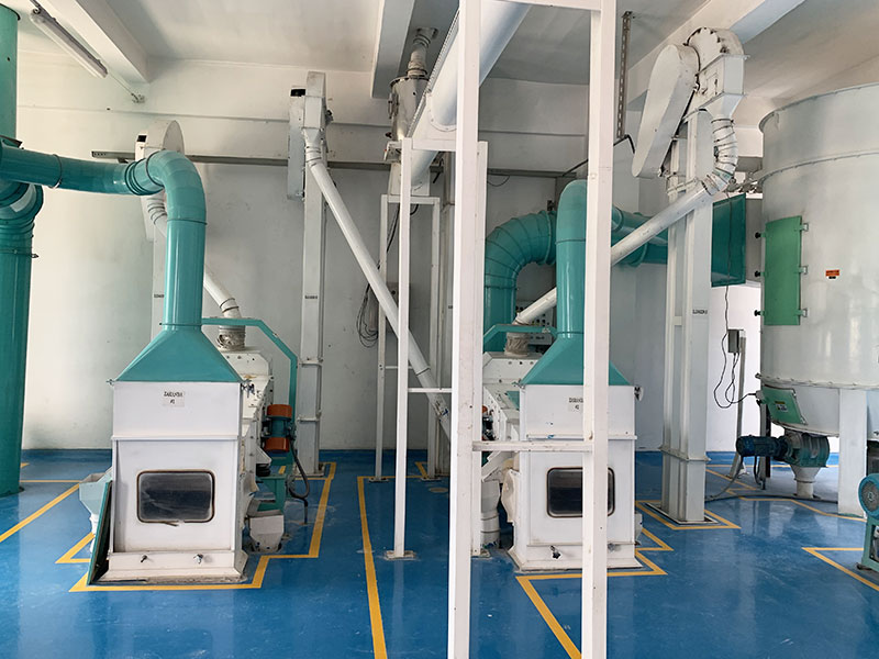 2. Peeling and degerming section: two pass peeling, one pass polishing, one pass sifting, one pass grading.