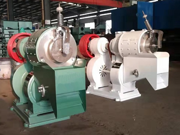 Corn are send into hulling chamber and moves along the main axis driven by the spiral thruster. The pressure door presses and the crimped roller rotates to rub and hull. Meanwhile, the high-pressure blower spray air into hulling chamber through roller gap to further polish the particles and take heat away. Big bran goes into separation chamber through the sieve. Fine brans are discharged by suction blower and collected by collector. Clean broken corn is collected at kernel out let.