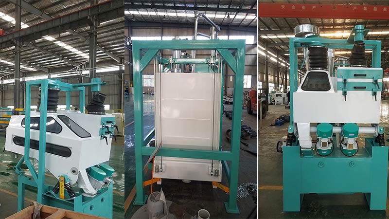The roller mill models: 2235. 2240. 2250 with the round sifter,blower,air seal and pipe,the control box is panel screen control. and cloth dust collector can keep the whole workshop cleaning.