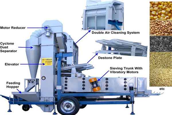 Combine function of Air cleaning,Gravity separating,Screen grading,Equipped with elevator,screw conveyor and belt conveyor